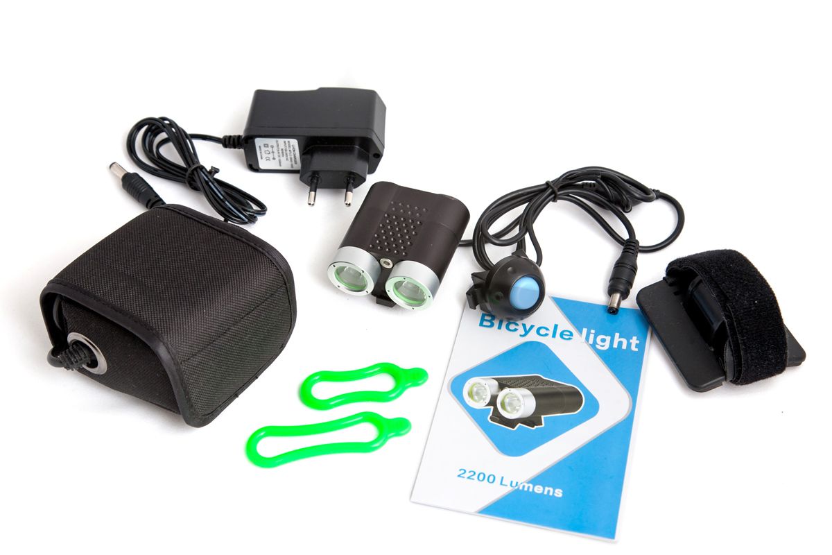 Бренд SANGUAN Модель SG-N2200 Год Без года Вид велофонаря (передний/задний/комплект) Передний Количество ламп 2 Световой поток в люменах 2200 lm Источник света Светодиод Влагозащита IP66 Материал Алюминиевый сплав Т6063 T6 Способ крепления Может быть закреплён на руль велосипеда (резиновыми хомутами); на голову велосипедиста или на шлем, с помощью налобного крепления.. Тип конструкции Выносная кнопка, выносной аккумулятор -